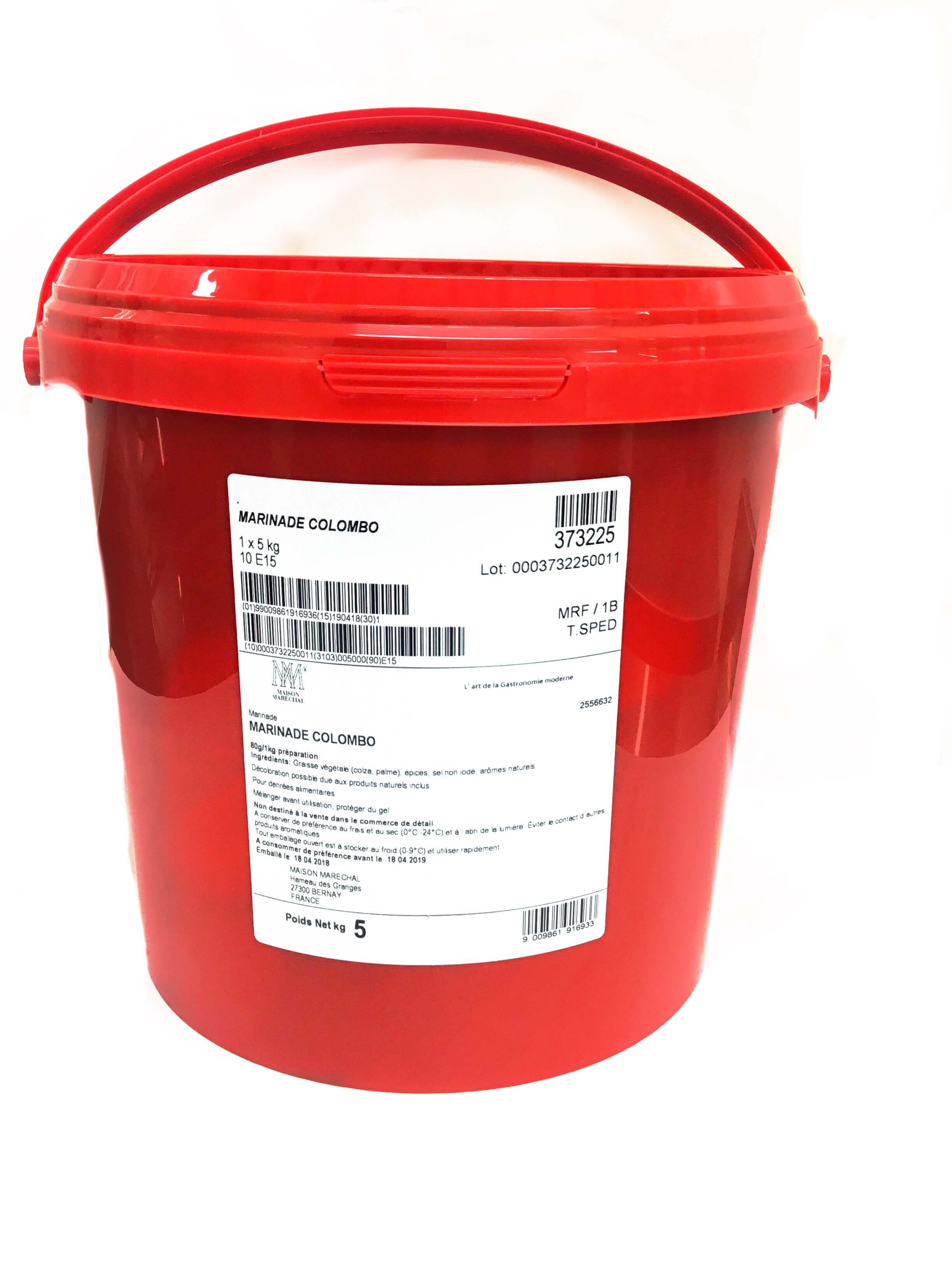 Composition: Graisse végétal(colza, palme), épices, sel non iodé, arômes naturels. Dose d' emploi: 40g/1kg préparation. Allergène : Ne contient pas d'allergène. Goûts prédominants: paprika, coriandre, ail. Condition de stockage: A conserver de préférence au frais et au sec (0°C -24°C) et à l'abri de la lumière. Eviter le contact d' autres produits aromatiques. Tout emballage ouvert est à stocker au froid (0-9°C). Emballage/Conditionnement: Seau à 5 kg